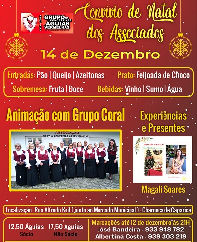 A Associação Grupo de Concertinas Águias Vemelhas, sita na Charneca de Caparica, realiza um convívio de Natal no domingo, dia 14 de dezembro.