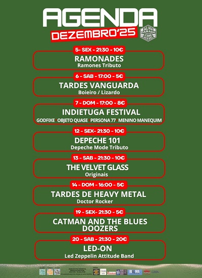 Programação de dezembro da Alma Danada Associação Criativa - Cine Incrível, na Rua Capitão Leitão, 1 Almada. Contactos: