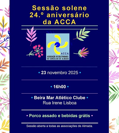 A ACCA convidou as Associações do concelho de Almada e entidades autárquicas dos vários órgãos do poder local, para participarem na sessão solene do 24.º Aniversário da instituição, fundada em 20 de novembro de 2001.